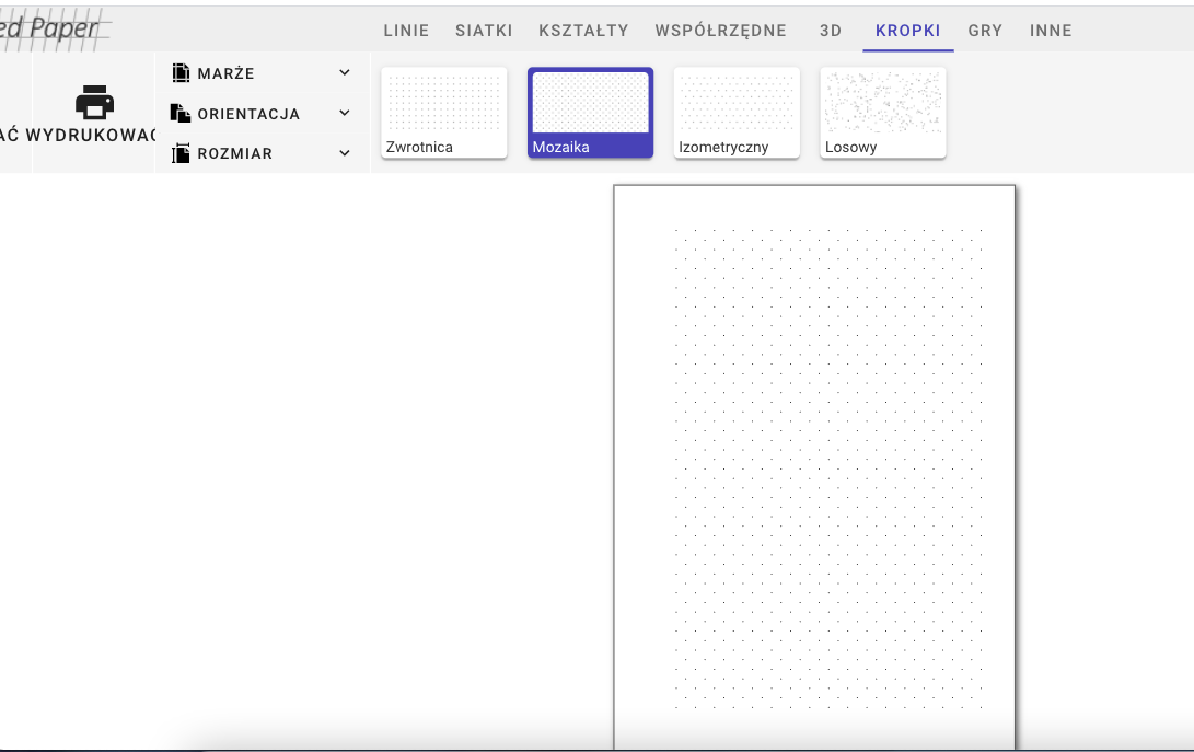 Na stronach z generatorami kartek w kropki można wygenerować kartki do ćwiczeń, na których uczniowie mogą łączyć kropki w określonych konfiguracjach, kolorując kropki mogą tworzyć mozaiki i grafiki. Takie kartki mogą nam także posłużyć do dyktanda graficznego, w ramach którego uczniowie kolorować bedą określoną liczbę kropek odpowiednim kolorem., albo poruszać się po kartce według określonego wzoru. Mogą także otoczyć pętlą wylosowaną na etykiecie liczbę kropek, pisać po śladzie itd.