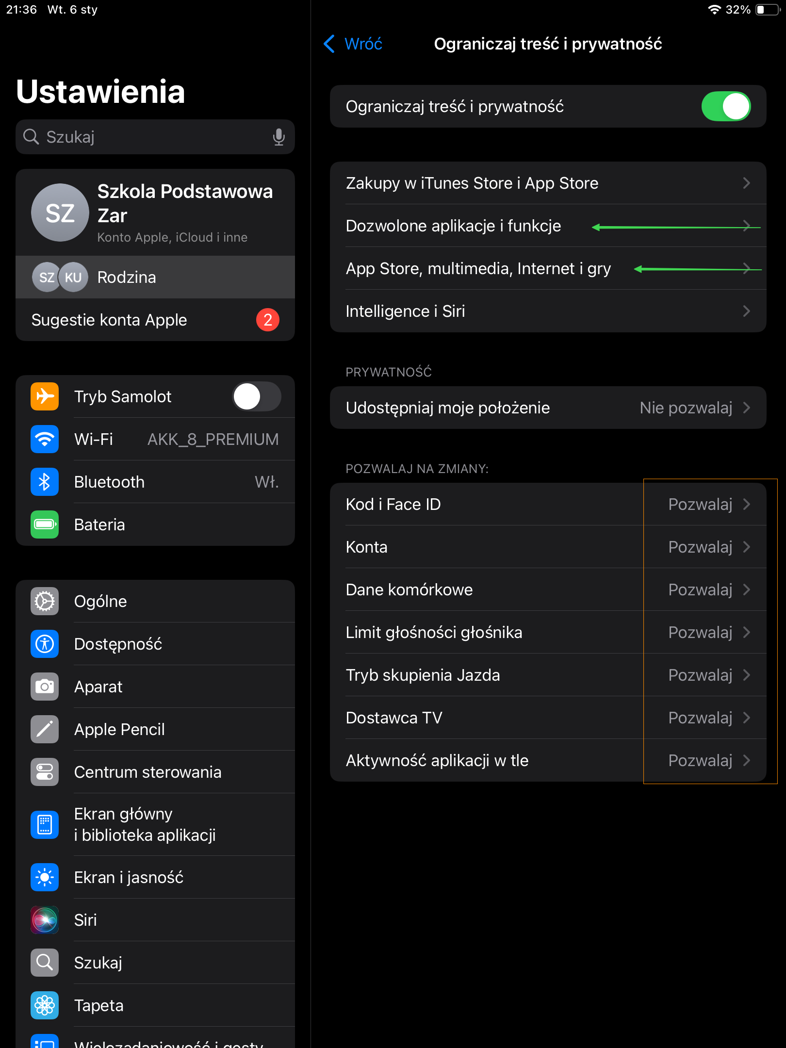 - Wchodzimy w Ustawienia → Rodzina