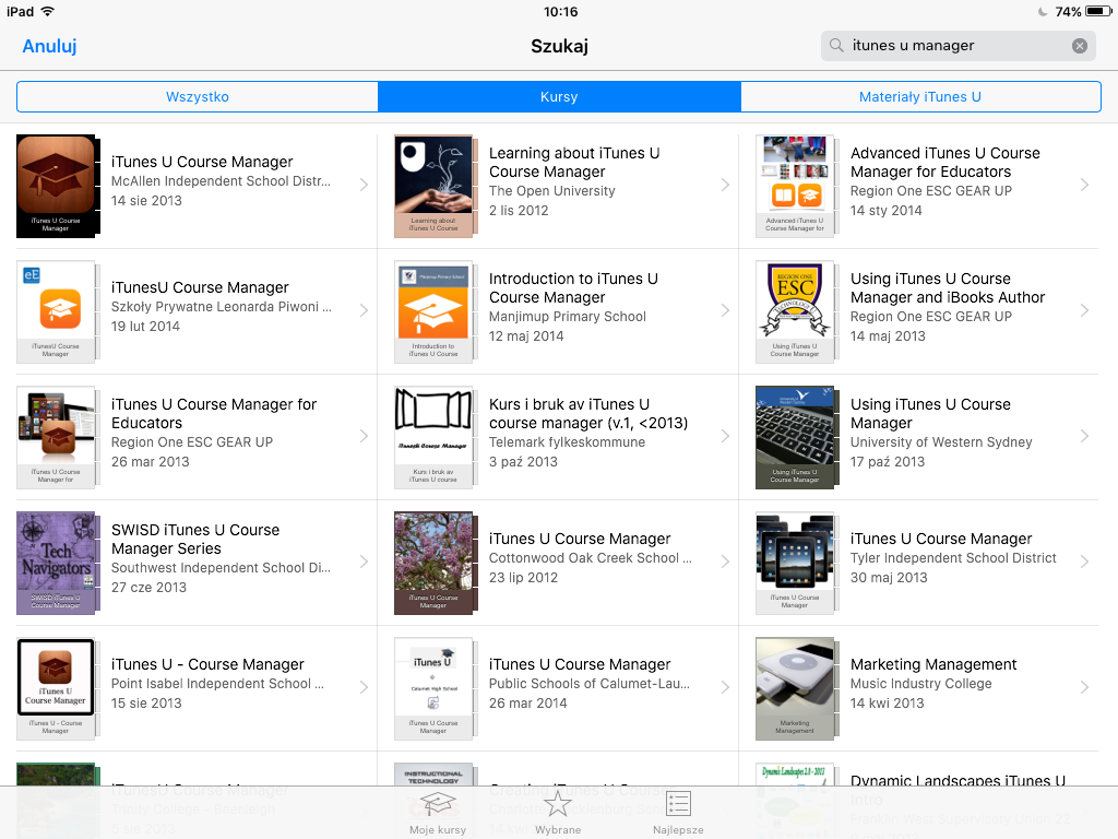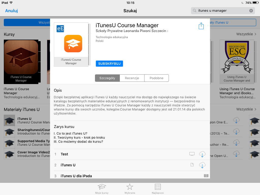 Bardzo dobry kurs dla nauczycieli chcących pracować z iTunes U stworzył Daniel Makus, Apple Distinguished Educator, nauczyciel i wicedyrektor prywatnej szkoły ze Szczecina, szkoły od lat kształcącej z iPadami w modelu 1:1. Kurs do pobrania oczywiście w iTunes U (tu) Polecam i kurs, i oczywiście platformę.