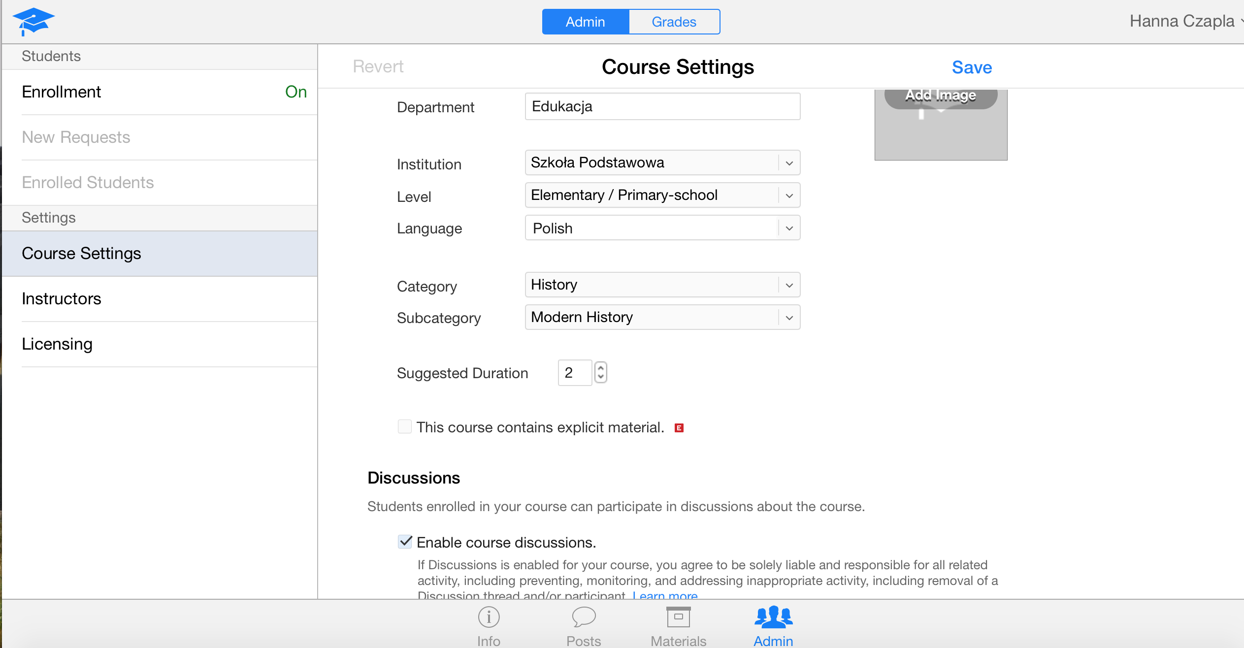 Jeżeli upublicznimy kurs, każdy go będzie mógł obejrzeć i zacząć bez logowania. Jeśli chcemy kurs stworzyć dla naszych uczniów i oceniać go, będą się musieli zalogować. Czy to znaczy, że muszą się logować imieniem i nazwiskiem? Niekoniecznie, wszystko zależy od tego, czy korzystają z własnych urządzeń, czy szkolnych.