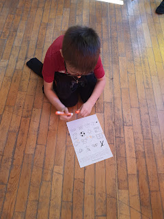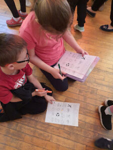 Nauczyciel pokazuje kolejno proste symbole (zał.4.1-4.4) a uczniowie mają za zadanie przy pomocy flamastra narysować je.