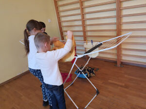 1)rozłożyć suszarkę do prania (to musi być poprzedzone instrukcją i przećwiczeniem tej czynności przez uczniów),