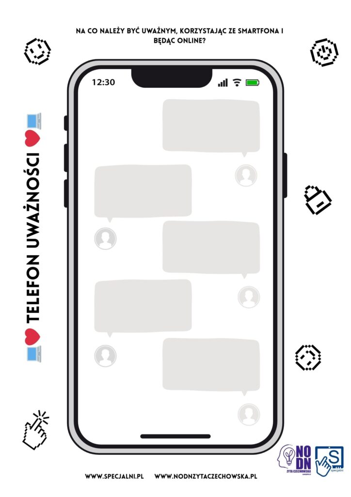 Z myślą o wsparciu Państwa pracy przygotowałam karty pracy związane z tematyką uważności cyfrowej i bezpiecznego korzystania ze smartfona oraz Internetu. Można je wykorzystać zarówno podczas lekcji wychowawczych, zajęć profilaktycznych, jak i w ramach obchodów DBI.